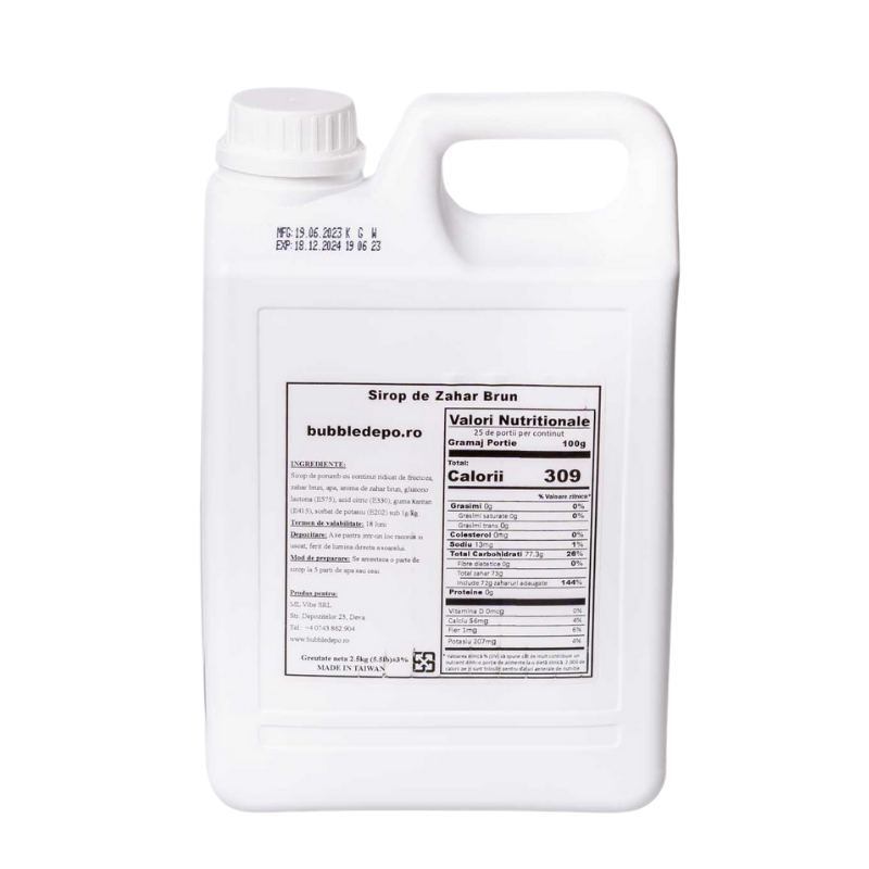 Sirop de zahar brun pentru produse bubble tea, bubble milk, diferite preparate pe baza de cafea sau lapte, smoothie, ca topping pentru inghetata sau in prepararea diferitor cocktailuri.