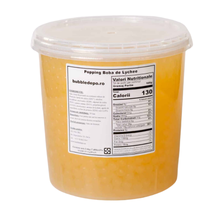 Popping boba de Lychee (bursting boba) conține suc delicios de lychee. Când este mestecat, invelisul acestuia se va rupe, lasand un gust nou și interesant, ce merita incercat.