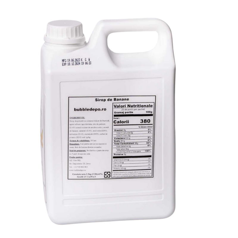 Sirop de banane pentru produse bubble tea,bubble milk, diferite preparate pe baza de cafea sau lapte, smoothie, ca topping pentru inghetata sau in prepararea diferitor cocktailuri.